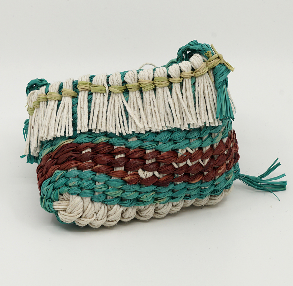 Size / Medium:11 x 7cm – Raffia, acrylic wool