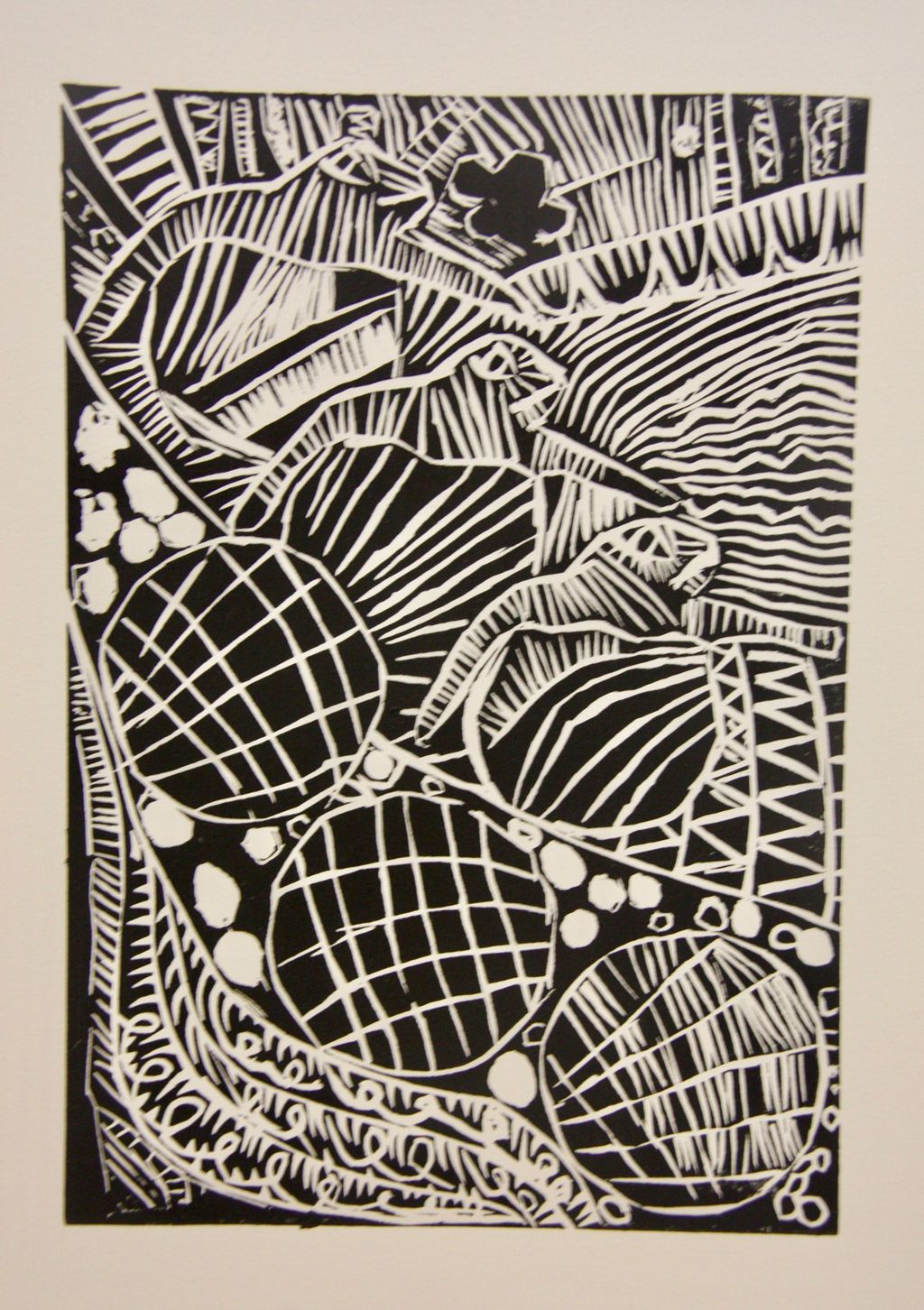 Size / Medium:Paper size = 384mm x 565mm, Image size = 206mm x 298mm – Lino Cut Prints