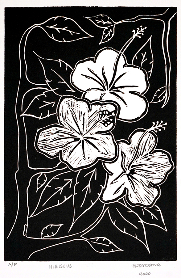 Art Centre notes: this artwork is a linocut is printed on BFK Rives paper. 100% cotton rag with strong archival properties.
