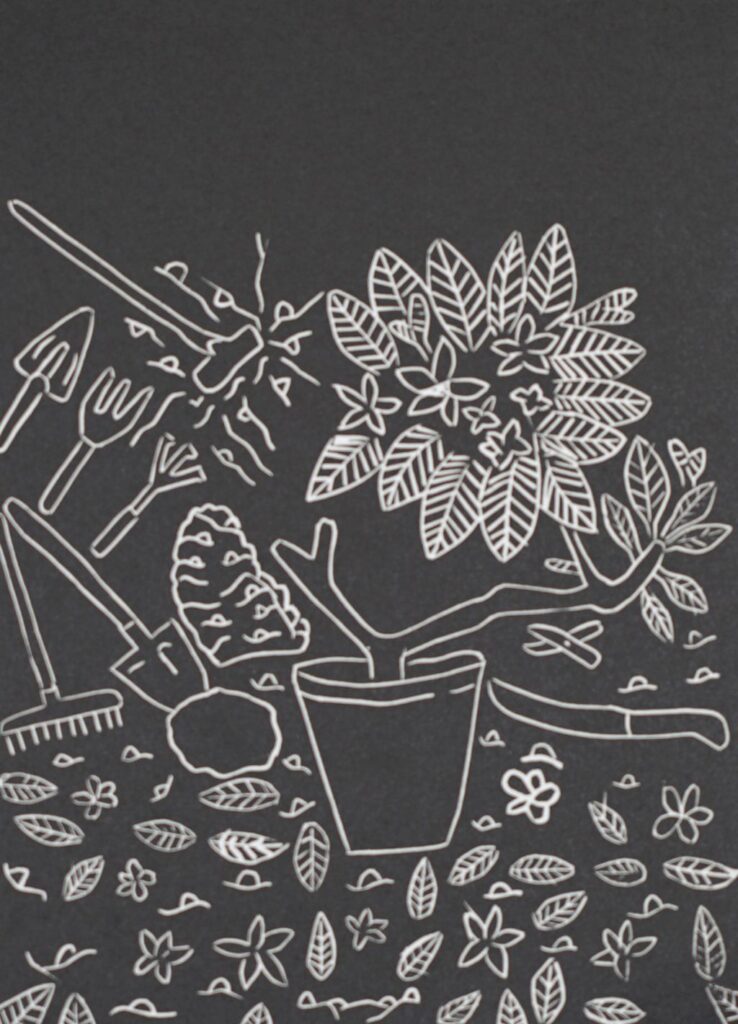 The artwork is a (B/W) lino print, printed on BFK Rives paper (100% cotton rag with strong archival properties).